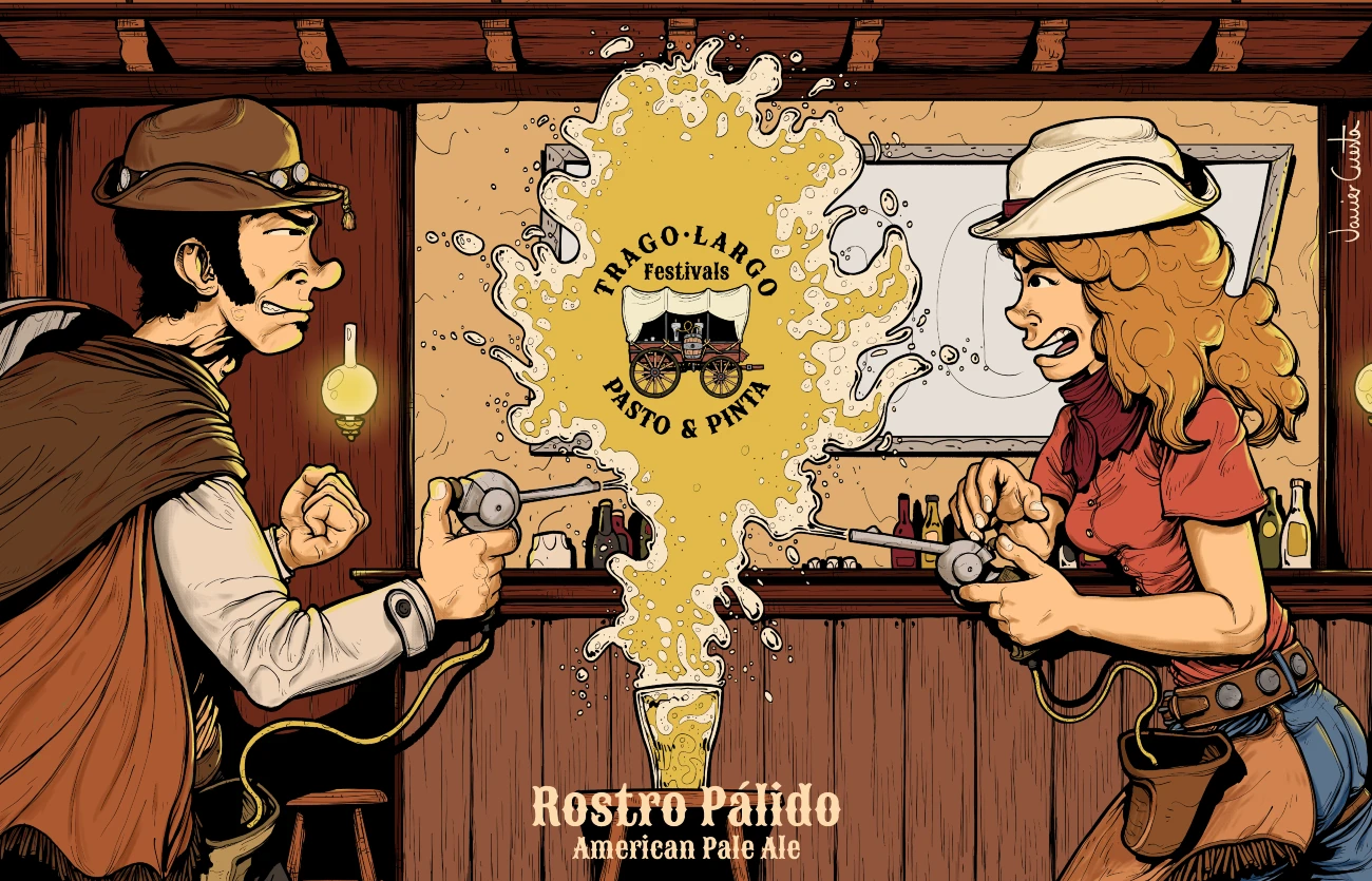 Los “Rostros Pálidos” eran conocidos a lo largo y ancho de todo el territorio Trago Largo. Hay quien les teme por todas las historias que se han contado sobre estos vaqueros y todas las fechorías cometidas con sus dichosas Tap-guns, disparando litros y litros de esta cerveza de color anaranjado, con cuerpo Medio y espuma blanca con encaje de bruselas. Se nota la doble infusión de lúpulos en frío (DDH – Double Dry Hopping) qué le proporciona unos aromas intensos a cítricos y melocotón y un balance casi perfecto entre Dulzor (Maltas) y Amargor (Lúpulos), es una APA con mayusculas. Sin embargo, también hay quien los admiran y esperan su llegada con ansia al territorio. Lo más curioso, es que aquellos que los alaban lo hacen exactamante por la misma razón que los que los evitan. Y, para ti, ¿son los buenos o los malos? Cerveza Artesana de Alta Fermentación, Sin Microfiltrar y Sin Pasteurizar. El Estilo Oficial de esta Cerveza es American Pale Ale. Una Craft Beer para cualquier ocasión y con un amplio maridaje. Lúpulos/Hops: Nugget & Centennial – DDH: Mosaic & Centennial. – A.B.V: 5,7% Alc.Vol. – Amargor/IBU’s (International Bitterness Units): 30. Temperatura Recomendada de Servicio: 4-5 Grados.